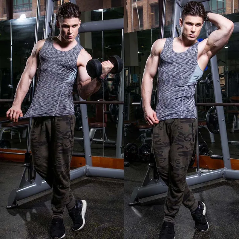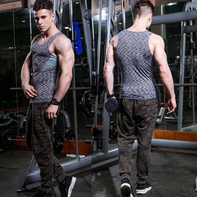 New arrival Men's Quick Dry Fitness Tank Top Compression Sports Vest Men Bodybuilding Tops &Tees Running T Shir