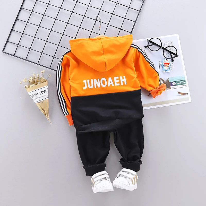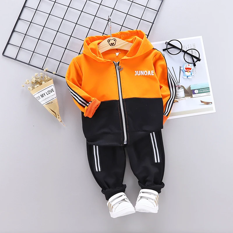 Spring Autumn Baby Casual Tracksuit Children Boys Girls Hooded Jacket Pants 2Pcs Kids Suit Cotton I