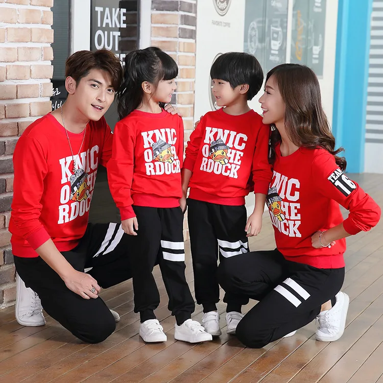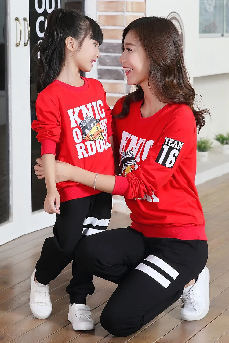 Autumn and Winter Mother and Daughter Matching Tracksuits Red Sports Twin Set Clothing Primary School / Kindergarten Uniform