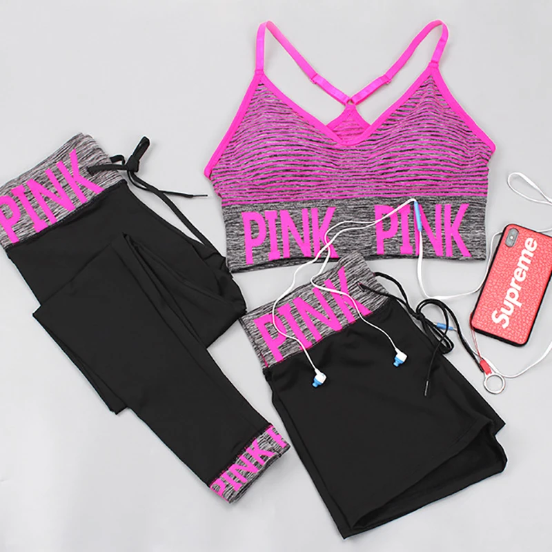 Cheap Chance of 2/3 Pcs/lot Yoga Set Shorts +Bra Women Fitness Clothing Sportswear Woman Gym Leggings + Push-up Str