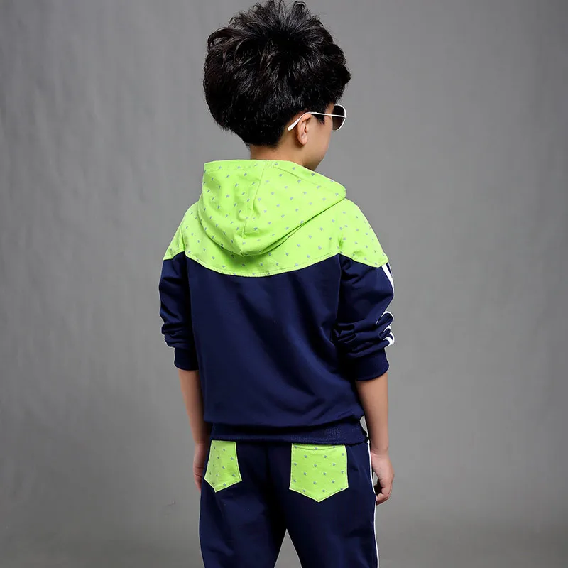Boy Hooded Tracksuit Clothes set Kids Spring&Autumn Cotton School Uniform Sport Suit Boys Clothing Sets 4 6 8 10 12 14 year